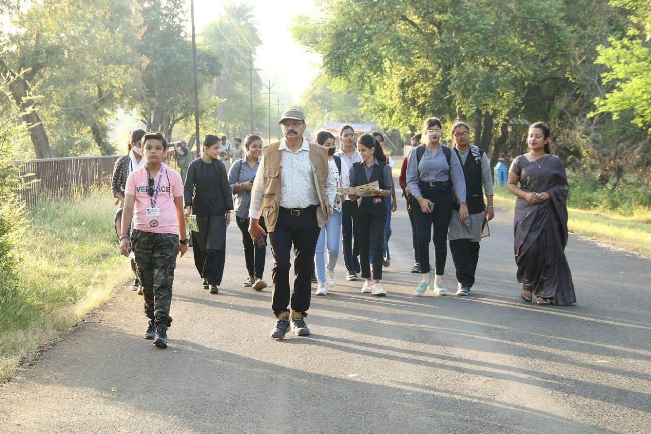 Under the State Level Wildlife Week 2022, a Bird watching and Biodiversity camp was organized at 6.00 am today. About 65 participants, including participants from Sam Girls College and V.N.S. saw different species of birds, which include Large Gray Babbler, Oriental Darter, Small Minivet, Spotted Dove, Laughing Dove, Gray Surprise, Little Carmorant, Purple Surprise, Night Haron, Common Ayora, Gray Hornbill, The participants got excited to see White Throated Kingfisher, Woolly Naked Stork, Bronzed Wind Jakana, Black Drongo, Greenp Bee Eater, White Breasted Water Hawn and Pond Heron etc.