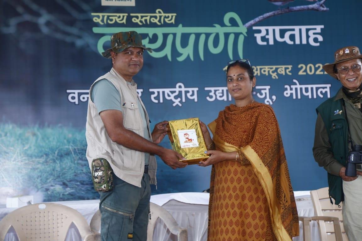 कल दिनांक 07.10.2022 को राज्य स्तरीय वन्यप्राणी सप्ताह 2022 का समापन वन विहार राष्ट्रीय उद्यान भोपाल में डॉ. कुॅंवर विजय शाह जी, मान्नीय मंत्री, वन, मध्य प्रदेश शासन के मुख्य आतिथ्य में प्रातः 11.30 बजे सम्पन्न होगा। मुख्य अतिथि द्वारा राज्य स्तरीय वन्यप्राणी सप्ताह 2022 के अंतर्गत सम्पन्न विभिन्न प्रतियोगिताओं के विजेता प्रतिभागियों को पुरस्कार एवं प्रशस्ति पत्र प्रदान किये जायेंगे साथ ही वन्यप्राणी संरक्षण में उत्कृष्ट कार्य करने वाले अधिकारियों/कर्मचारियों को भी वन्यप्राणी संरक्षण पुरस्कार एवं प्रशस्ति पत्र मुख्य अतिथि द्वारा प्रदान किये जावेंगे तथा पेंच टाईगर रिजर्व में आयोजित डॉक्यूमेंट्री फिल्म प्रतियोगिता के विजेता प्रतिभागियों को एवं म.प्र. ईको पर्यटन विकास बोर्ड द्वारा आयोजित फोटोग्राफी प्रतियोगिता, वीडियोग्राफी प्रतियोगिता एवं ट्रेकिंग रूट प्रतियोगिता के विजेता प्रतिभागियों को भी पुरस्कृत किया जावेगा।