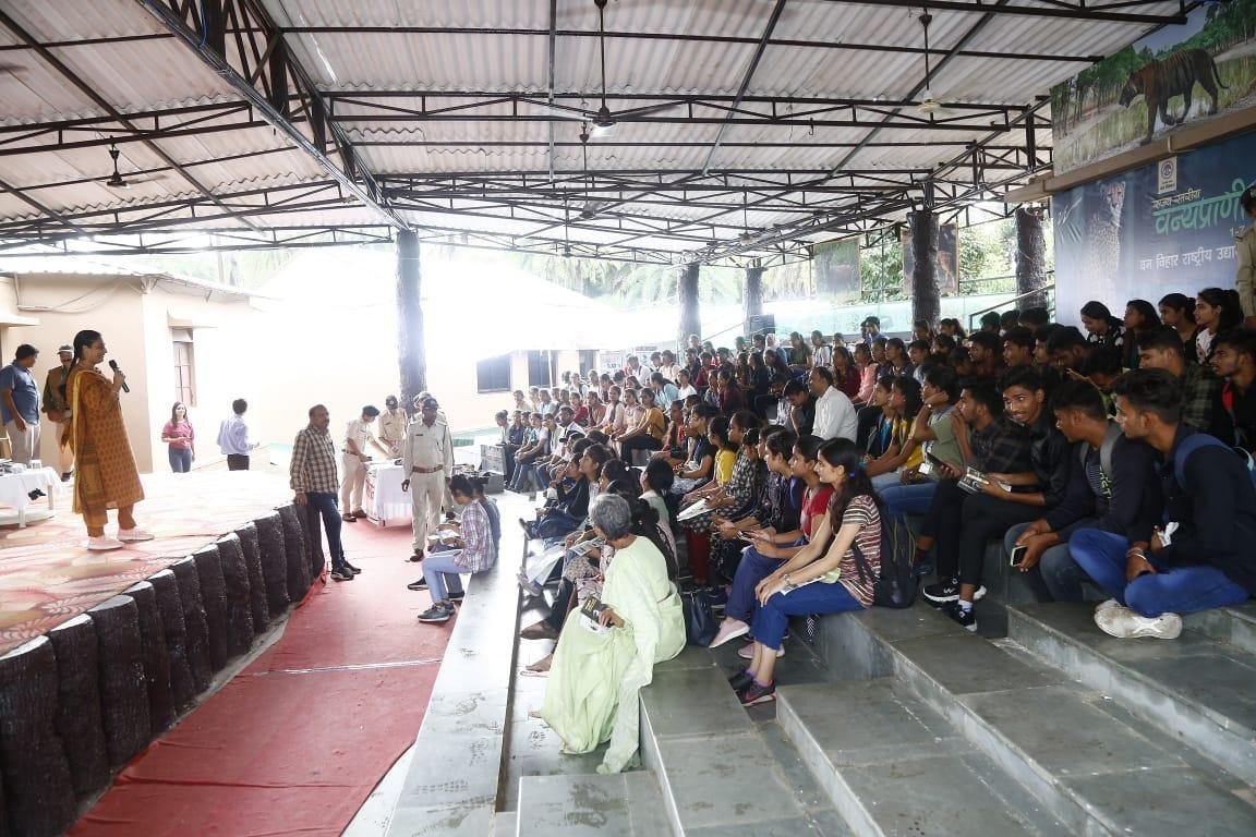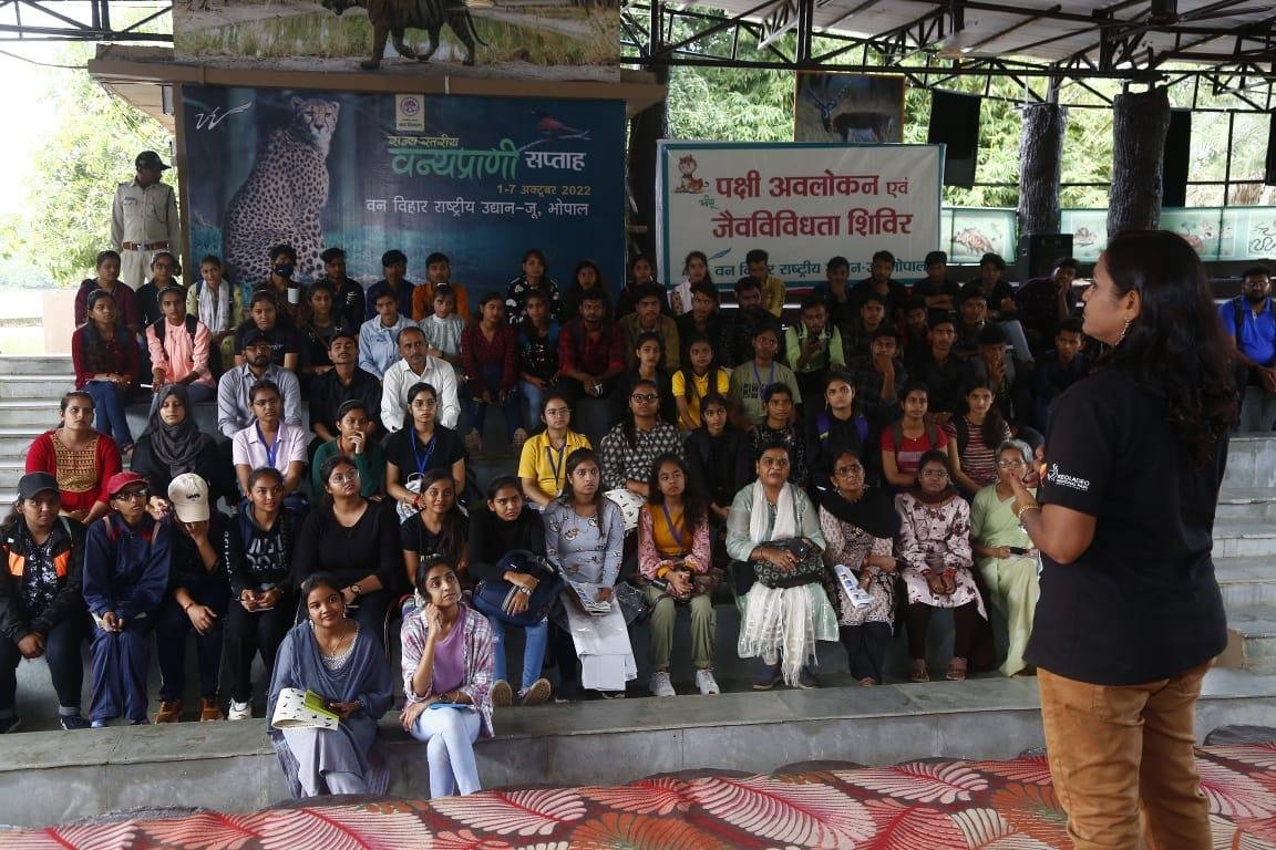 राज्य स्तरीय वन्यप्राणी सप्ताह 2022 के तहत आज दिनांक 06.10.2022 को प्रातः 6.00 बजे पक्षी अवलोकन एवं जैवविविधता शिविर का आयोजन किया गया। इस कार्यक्रम में नूतन कालेज, रीजनल कालेज एवं मित्तल कालेज के लगभग 137 प्रतिभागियों ने पक्षियों की विभिन्न प्रजातियों का दर्शन किये जिनमें प्रमुख है ग्रे हेरोन, लिटिल कार्मोरेंट, ओरिएंटल डार्टर, ब्लैक रेड स्टार्ट, बे बैक्ड स्राईक, ग्रे होर्नबिल, ब्लैक ड्रोंगो, रेड वेंटेड बुलबुल, कॉमन आईओरा, पाईड बुशचैट, गोल्डन ओरिओल, दूधराज, इग्रेट, मेग पाई राबिन, ब्रोंज विंग जकाना, किंगफिशर, ग्रीन बी ईटर, टिटहरी, पोंड हेरोन, रेड मुनिया, विहिस्लिंगटील्स कार्मोरेंट, मूरहैन, ड्रोंगो, सिल्वर बिल मुनिया आदि को देखकर प्रतिभागी उत्साहित हो उठे। स्रोत व्यक्ति के रूप में डॉ. सुरेन्द्र तिवारी, डॉ. सुदेश वाघमारे, डॉ. संगीता राजगीर एवं मो. खालिक तथा अन्य अधिकारी/कर्मचारी उपस्थित रहे। इस अवसर पर संचालक वन विहार श्रीमती पदमप्रिया बालकृष्णन भी उपस्थित रहीं। कार्यक्रम का संचालन सहायक संचालक वन विहार श्री एस.के.सिन्हा द्वारा किया गया।