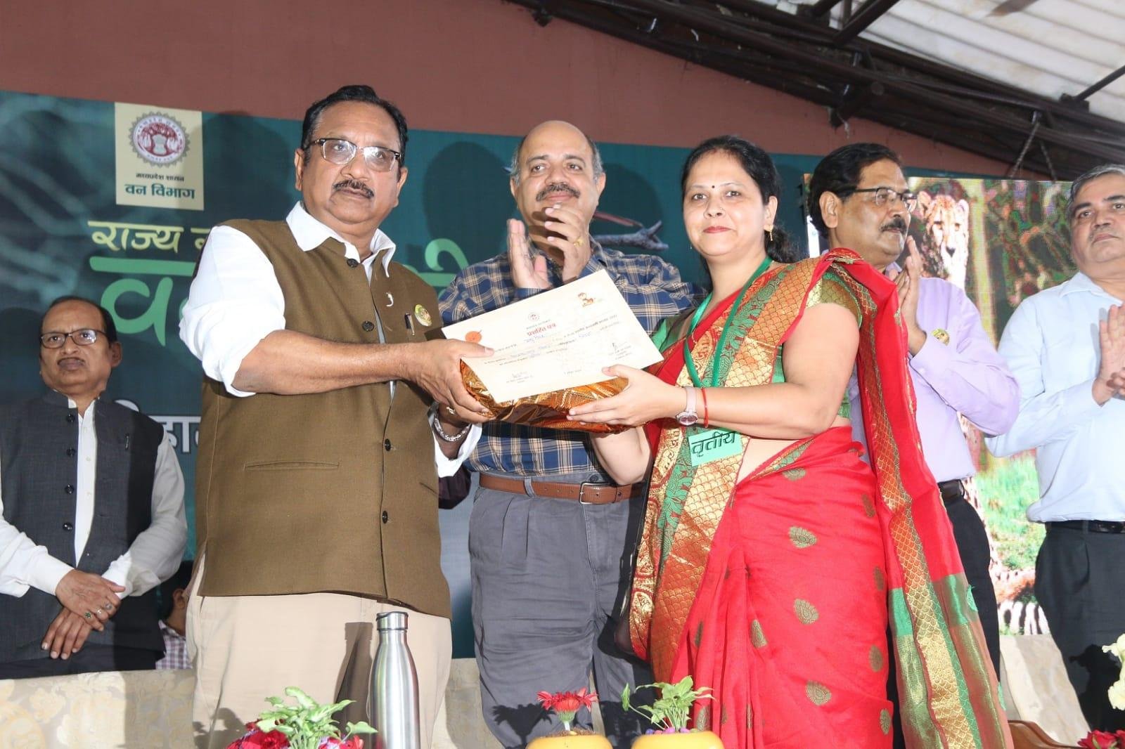 At the end of the program, Assistant Director Van Vihar National Park Shri SK Sinha presented the Chief Guest and all the honourable guests, award winners, print and electronic media, parents and associate officers/employees, institutions- Bamboo Mission, MP. Thanks were expressed to Eco Tourism Development Board, Biodiversity Board, Van Mandal Bhopal, Social Forestry Bhopal, Chief Conservator of Forests Bhopal, etc.