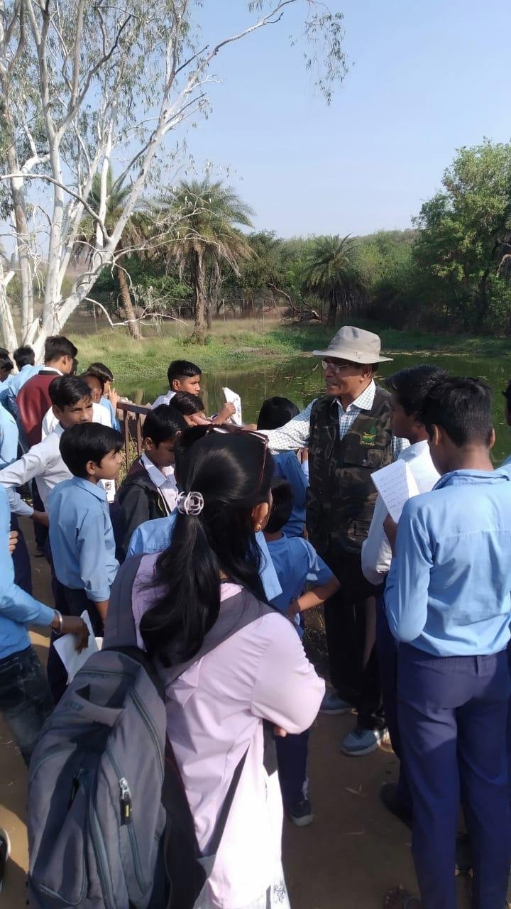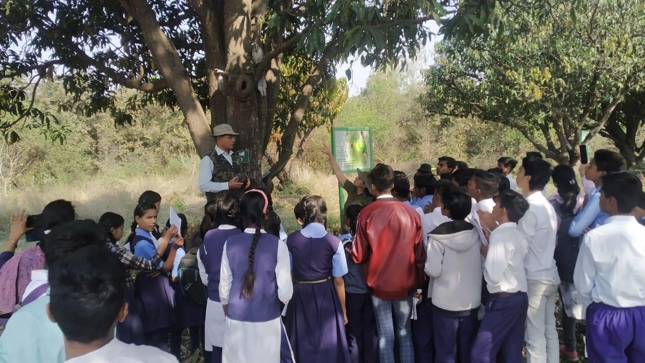 वन विहार राष्ट्रीय उद्यान, जू भोपाल में छात्र - छात्राओं में वन, वन्यप्राणियों एवं पर्यावरण के प्रति जागरूकता तथा प्रकृति संरक्षण के प्रति संवेदनशीलता विकसित करने की दृष्टि से भोपाल शहर एवं उसके आस-पास के ग्रामों के शासकीय विद्यालयों के विद्यार्थियों के लिये एक दिवसीय नेचर कैम्प आयोजित किये जा रहे हैं। इसी क्रम में आज दिनांक 28.02.2023 को शासकीय हाई स्कूल बरखेड़ा पठानी भोपाल के 50 विद्यार्थियों ने उक्त नेचर कैम्प में भाग लिया। कार्यक्रम में स्रोत व्यक्ति रूप में श्री ए. के. खरे, से.नि. उप वनसंरक्षक एवं पक्षीविद के रूप में डॉ. संगीता राजगीर, भोपाल बर्ड्स उपस्थित रहीं । विषय विशेषज्ञों द्वारा प्रतिभागियों को पक्षी दर्शन, तितली, वन्यप्राणी दर्शन, फिल्म शो, स्थल पर विद्यमान वानिकी गतिविधियों की जानकारी, वन, वन्यप्राणी व पर्यावरण से संबंधित रोचक गतिविधियॉ कराई गई एवं जानकारी प्रदान कर उनकी जिज्ञासाओं को शांत किया गया। इसके अतिरिक्त बाघ, तेंदुआ, भालू, मगर, घड़ियाल, चीतल, सांभर, नीलगाय आदि वन्यप्राणियों का भी अवलोकन किया। इस दौरान संचालक वन विहार श्रीमती पदमाप्रिया बालाकृष्णन, सहायक संचालक वन विहार श्री एस. के. सिन्हा एवं अन्य अधिकारी कर्मचारी उपस्थित रहे।