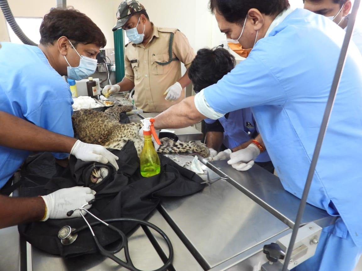 In the midnight of 31.08.2022, a leopard cub was brought in a critically injured condition by the rescue team of Satpura Tiger Reserve from Amla range of Betul, South Forest. On 03.09.2022, a detailed in-depth examination was done after giving him anaesthesia. Diagnosis through X-rays was done and blood samples were also taken. In the X-ray, it was found that the backbone & the spinal cord is broken, due to which its back part is paralyzed. Intensive health test was done under the leadership of Dr. Atul Gupta by Dr. Sunil Kumar Tumdia, Dr. Rajat Kulkarni and Dr. Amit and leopard is being treated.