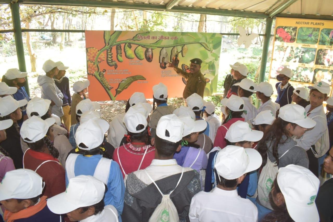 मध्यप्रदेश शासन वन विभाग द्वारा अनुभूति कार्यक्रम 2022-23 के अंतर्गत वन, वन्यप्राणी एवं पर्यावरण संरक्षण के प्रति संवेदनशीलता विकसित करने के उद्देश्य से मध्यप्रदेश ईको पर्यटन विकास बोर्ड के समन्वय से आयोजित प्रशिक्षण सह जागरूकता शिविर के अंतर्गत वन विहार राष्ट्रीय उद्यान में आज दिनांक 12.01.2023 को चतुर्थ शिविर आयोजित किया गया, जिसमें शासकीय नवीन हाई स्कूल बैरागढ़ चीचली के कुल 88 विद्यार्थियों ने भाग लिया। उक्त शिविर के आयोजन के प्रमुख उद्देश्य हैः- विद्यालयों के विद्यार्थियों अर्थात् भविष्य के नागरिकों को वन, वन्यप्राणी एवं पर्यावारण की अनुभूति कराकर, उन्हें उनके संरक्षण हेतु जागरूक एवं प्रेरित करना, विभाग एवं विभागीय अधिकारियों के कार्यो, उत्तरदायित्वों एवं चुनौतियों से विद्यार्थियों को अवगत कराना तथा माननीय प्रधानमंत्री जी द्वारा Mission LiFE "Lifestyle for Environment" के मूल मंत्रों से विद्यार्थियों को अवगत कराना ।