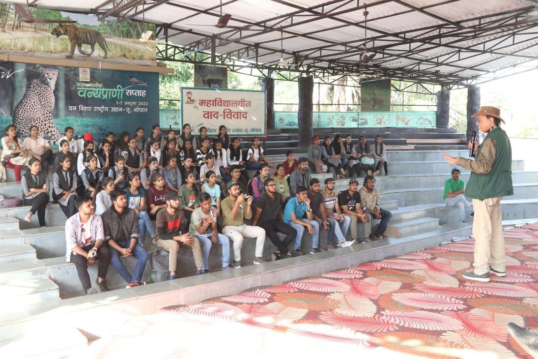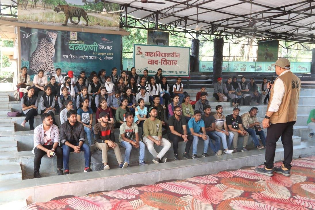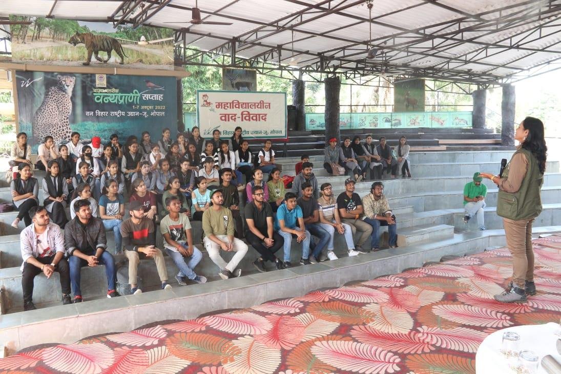 As in today's other competitions, a college debate competition was organized in collaboration with World Nature Fund India on the topic “Development is the cause of environmental imbalance” in the Vihar gallery located at Van Vihar from 11.00 am, in which 32 participants participated.