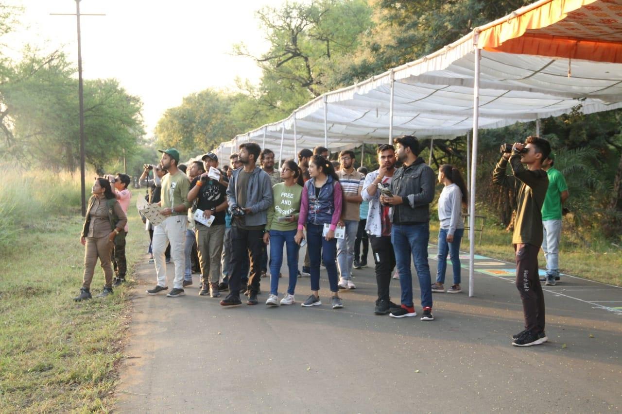 Under the State Level Wildlife Week 2022, a Bird watching and Biodiversity camp was organized at 6.00 am today. About 65 participants, including participants from Sam Girls College and V.N.S. saw different species of birds, which include Large Gray Babbler, Oriental Darter, Small Minivet, Spotted Dove, Laughing Dove, Gray Surprise, Little Carmorant, Purple Surprise, Night Haron, Common Ayora, Gray Hornbill, The participants got excited to see White Throated Kingfisher, Woolly Naked Stork, Bronzed Wind Jakana, Black Drongo, Greenp Bee Eater, White Breasted Water Hawn and Pond Heron etc.