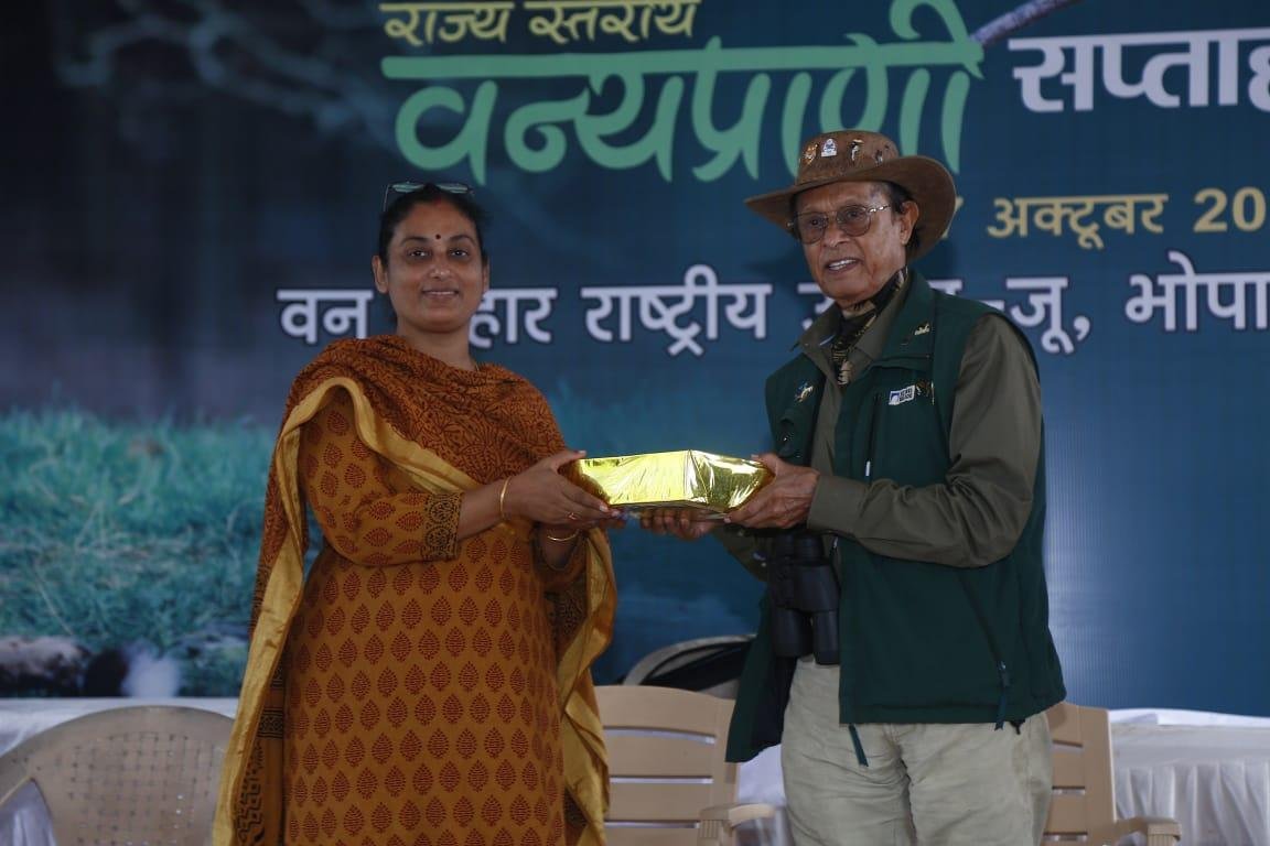 कल दिनांक 07.10.2022 को राज्य स्तरीय वन्यप्राणी सप्ताह 2022 का समापन वन विहार राष्ट्रीय उद्यान भोपाल में डॉ. कुॅंवर विजय शाह जी, मान्नीय मंत्री, वन, मध्य प्रदेश शासन के मुख्य आतिथ्य में प्रातः 11.30 बजे सम्पन्न होगा। मुख्य अतिथि द्वारा राज्य स्तरीय वन्यप्राणी सप्ताह 2022 के अंतर्गत सम्पन्न विभिन्न प्रतियोगिताओं के विजेता प्रतिभागियों को पुरस्कार एवं प्रशस्ति पत्र प्रदान किये जायेंगे साथ ही वन्यप्राणी संरक्षण में उत्कृष्ट कार्य करने वाले अधिकारियों/कर्मचारियों को भी वन्यप्राणी संरक्षण पुरस्कार एवं प्रशस्ति पत्र मुख्य अतिथि द्वारा प्रदान किये जावेंगे तथा पेंच टाईगर रिजर्व में आयोजित डॉक्यूमेंट्री फिल्म प्रतियोगिता के विजेता प्रतिभागियों को एवं म.प्र. ईको पर्यटन विकास बोर्ड द्वारा आयोजित फोटोग्राफी प्रतियोगिता, वीडियोग्राफी प्रतियोगिता एवं ट्रेकिंग रूट प्रतियोगिता के विजेता प्रतिभागियों को भी पुरस्कृत किया जावेगा।
