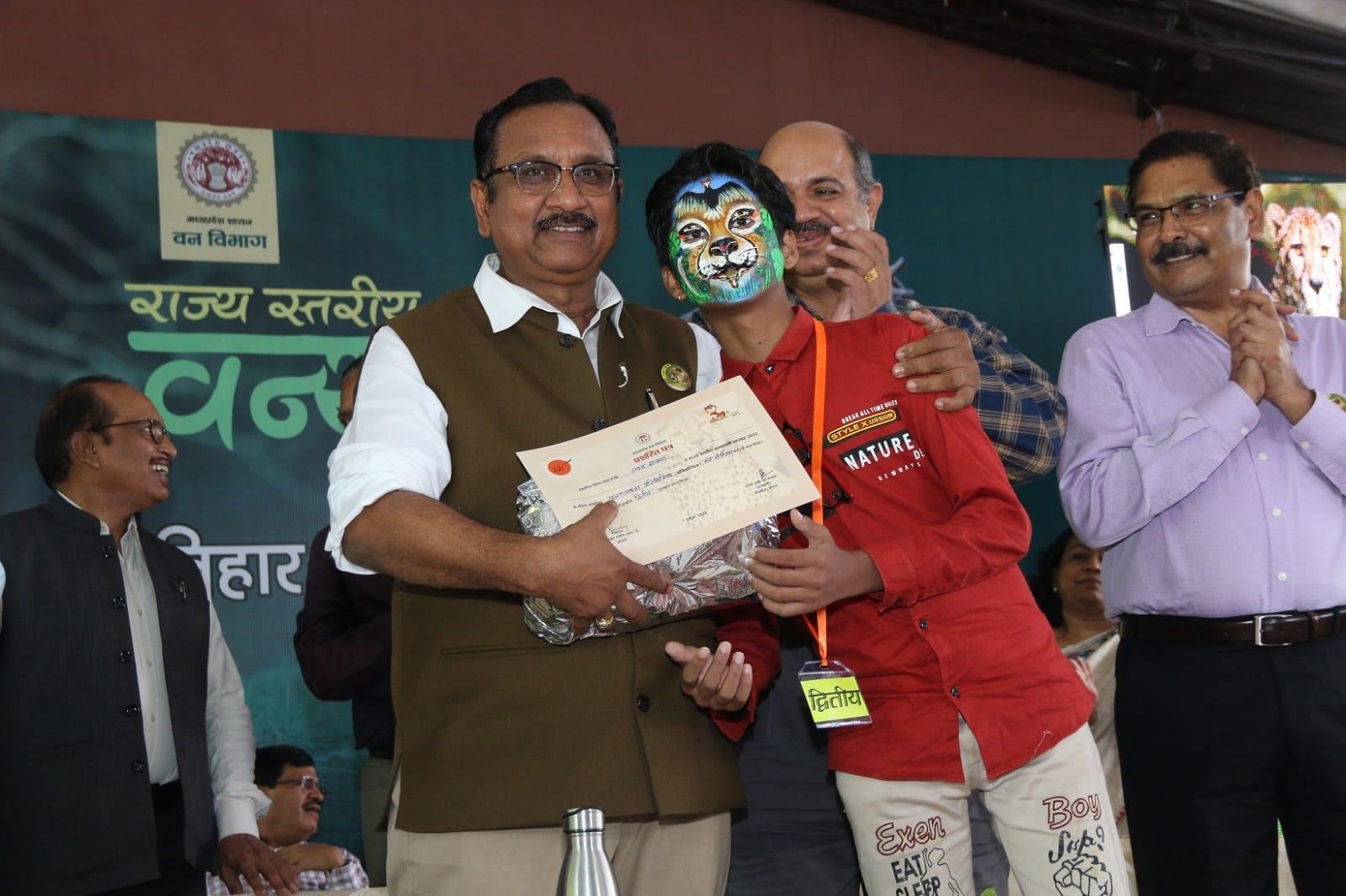 मुख्य अतिथि द्वारा राज्य स्तरी वन्यप्राणी 2022 के विजेता प्रतिभागियों को पुरस्कार एवं प्रमाण पत्र प्रदान किये गये साथ ही पेंच टाईगर रिजर्व में आयोजित डाक्यूमेंट्री फिल्म प्रतियोगिता के विजेता प्रतिभागियों को भी पुरस्कृत किया गया। साथ ही मुख्य अतिथि द्वारा विभिन्न वर्गो में वन्यप्राणी संरक्षण हेतु किये गये उत्कृष्ट कार्यों के लिये अधिकारियों/कर्मचारियों को वन्यप्राणी संरक्षण पुरस्कार एवं प्रशस्ति पत्र प्रदान किये गये तथा म.प्र. ईको पर्यटन विकास बोर्ड द्वारा आयोजित फोटोग्राफी प्रतियोगिता, वीडियोग्राफी प्रतियोगिता एवं ट्रेकिंग रूट प्रतियोगिता के विजेता प्रतिभागियों को भी पुरस्कृत किया गया।